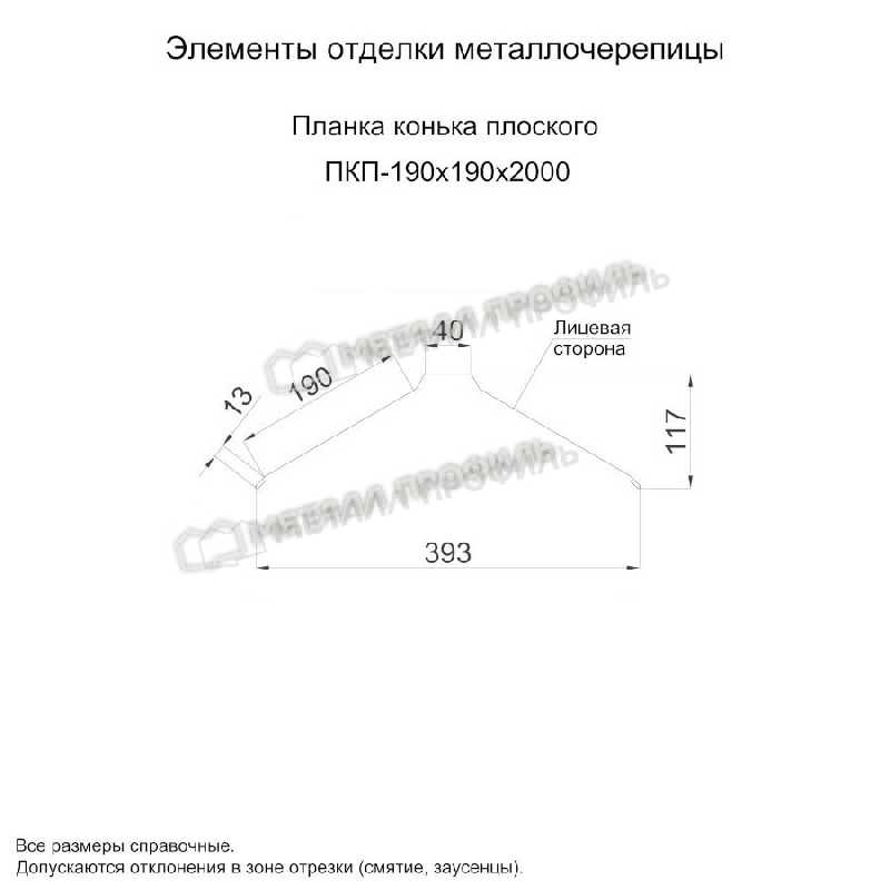 Планка конька плоского 190х190х2000 (ПЭ-01-7004-0.45)