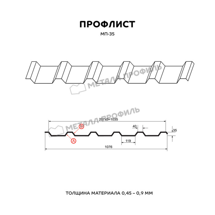 Профиль МП-35 имеет толщину 0,7 мм, что обеспечивает прочность и долговечность конструкции.