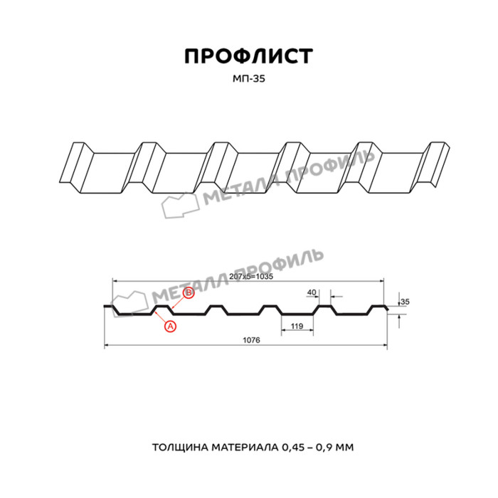 Профлист Металл-Профиль МП-35 Полиэстер 0.45 мм RAL 3009 Красная окись - это качественный и надежный материал для строительства и отделки различных объектов.