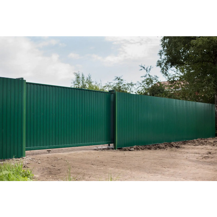 Цвет профлиста - RAL 6005 Зеленый мох, который придает зданию эстетичный и стильный вид. Этот оттенок идеально сочетается с природными элементами окружающей среды, что делает его популярным выбором для строительства загородных домов и коттеджей.