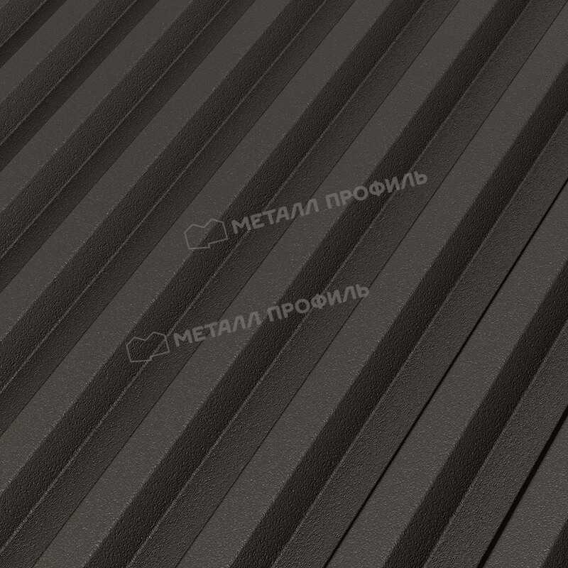 Цвет профлиста - темно-коричневый, что придает ему элегантный и стильный вид. Он идеально подходит для использования на крышах, фасадах зданий, заборах и других конструкциях.