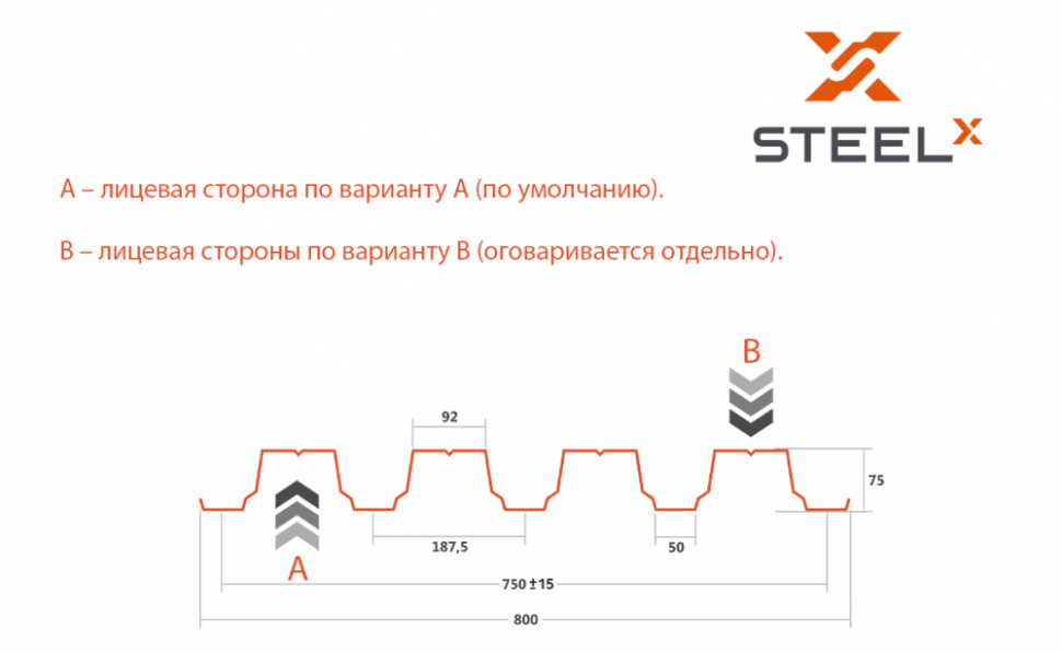 Профнастил SteelX Н75 полиэстер 0,35 RAL 1014